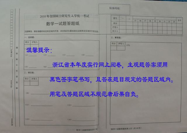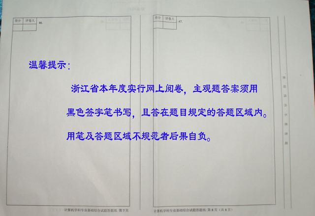 三、浙江省自2011年开始实行网上阅卷,主观题考试必须使用0.5mm黑色签字笔答题。
